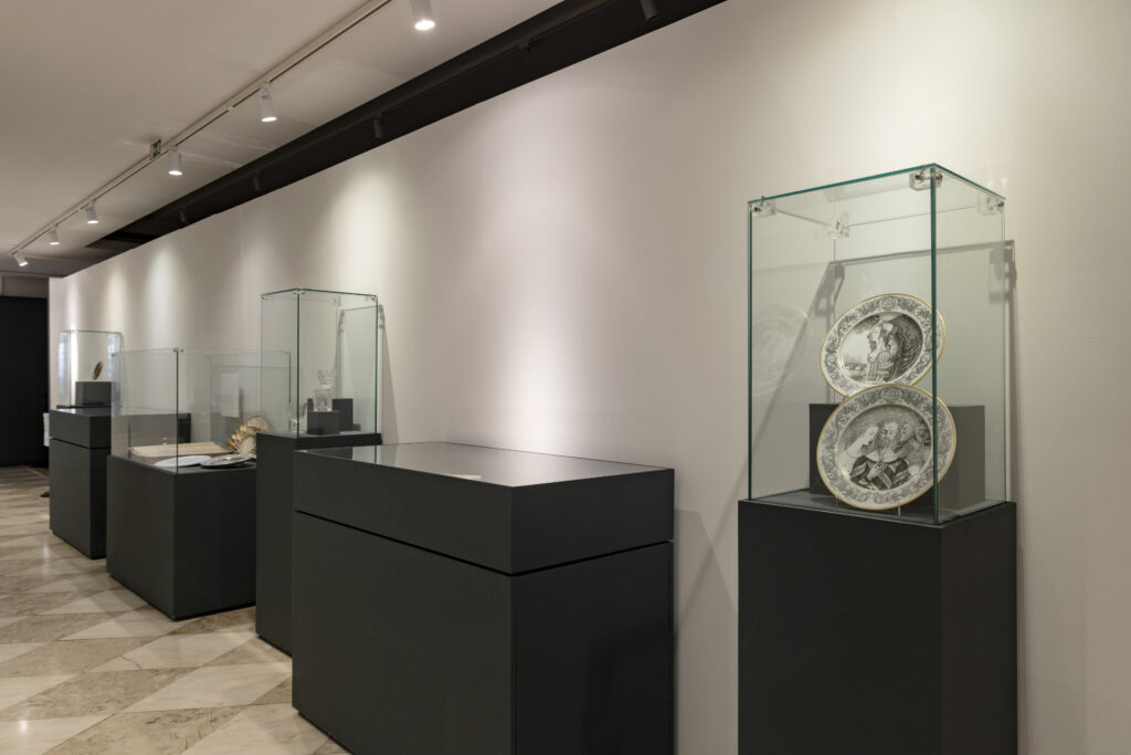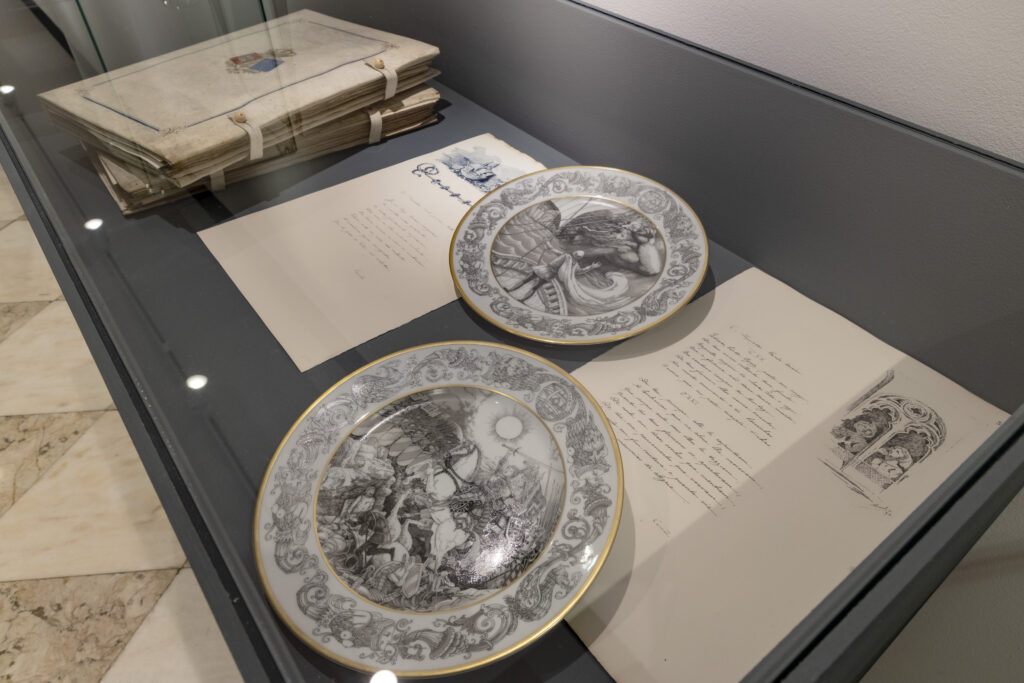 Desenhado por Lima de Freitas, um conjunto de pratos de porcelana da Fábrica Vista Alegre, encomendado em 1980, aquando do 4º centenário da morte do poeta, ilustra alguns dos seus versos. Igualmente desta manufatura, da sua produção inicial, apresentam-se os copos em vidro com a efígie de Luís de Camões.