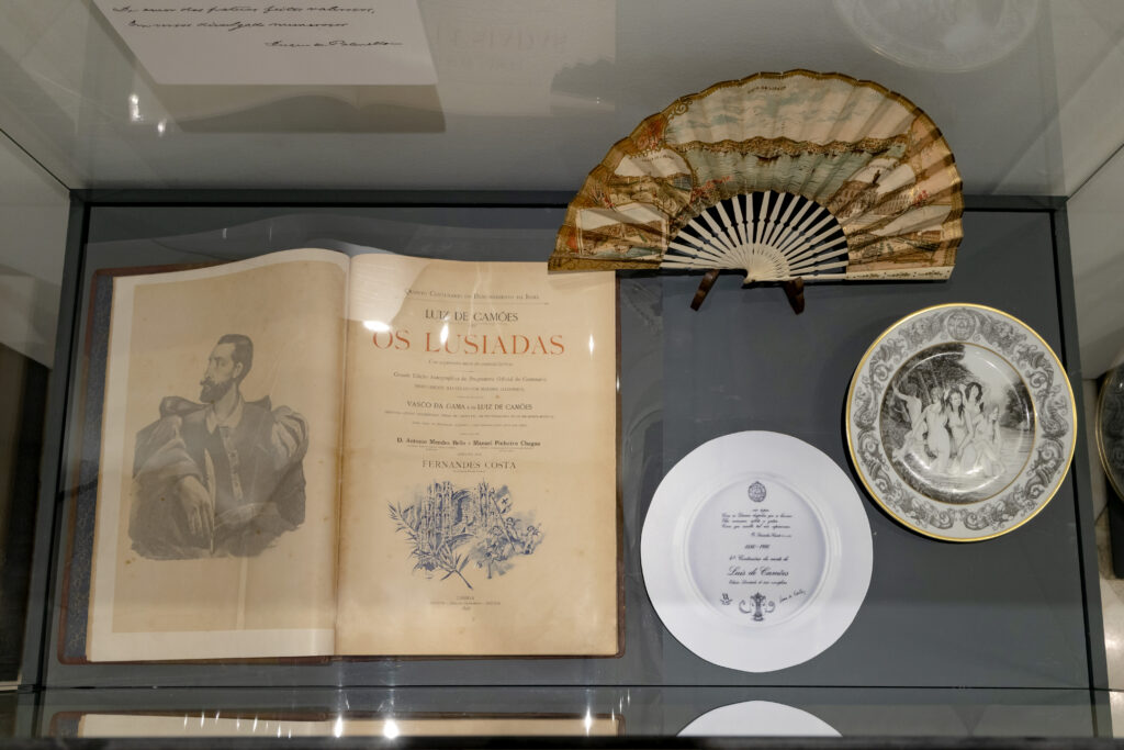Expõem-se duas edições d’Os Lusíadas, obra maior do poeta e da literatura portuguesa: um exemplar da primeira edição em inglês; e outra, manuscrita por diferentes mãos, comemorativa do 4º centenário da chegada de Vasco da Gama à Índia em 1498.